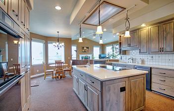 Custom built for enter taining and for longevity, this beautifully appointed 3,006 square foot home has no steps; wide door ways and hallways: walk in pantr y, spacious open kitchen, fabulous primar y suite with two separate baths and generous sized walk-in closet accessible from both primar y baths; storage and more storage throughout Third bath off hallway connec ts to guest bedroom. Large office/den/work/recreation space Spacious,