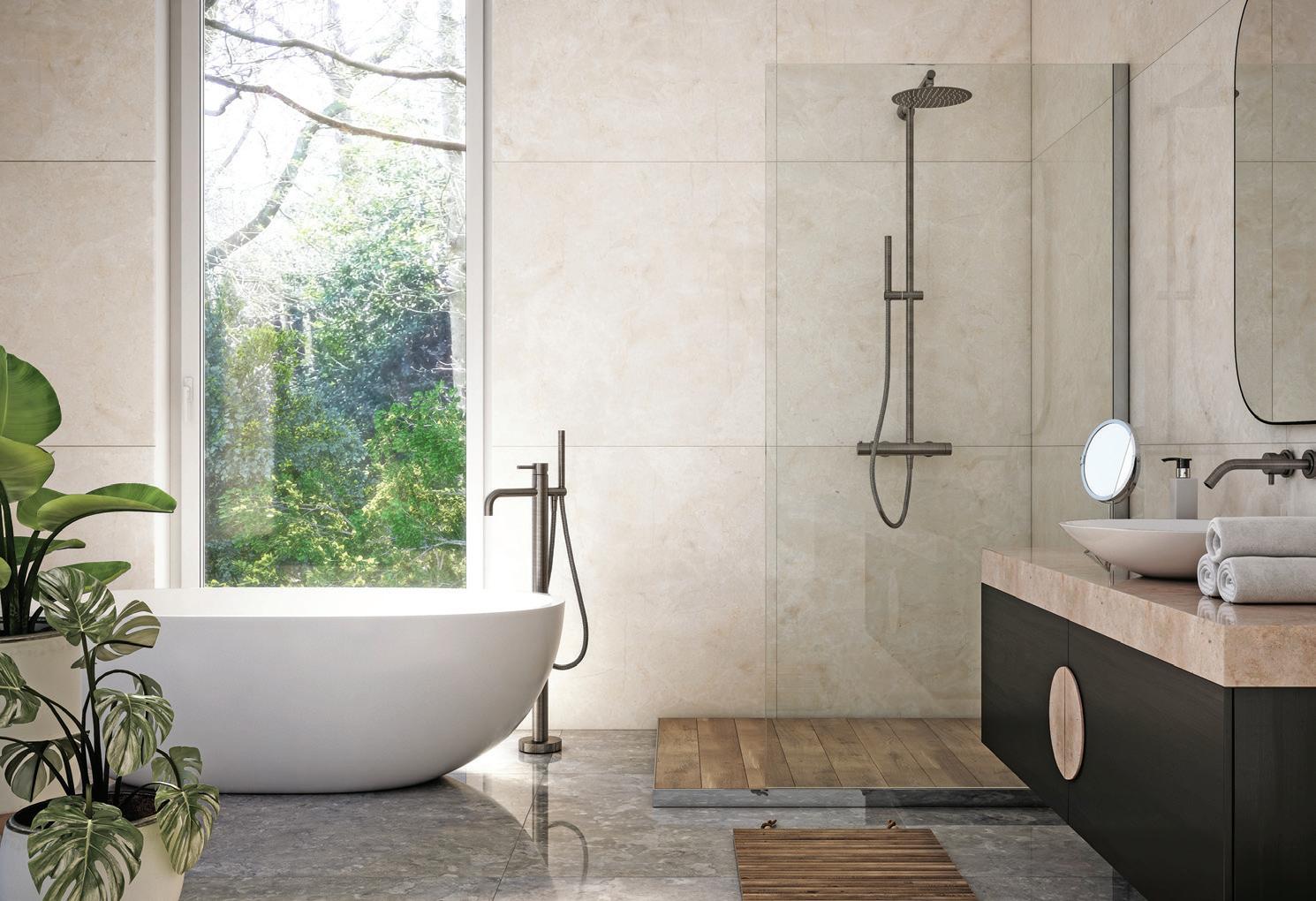 Most of us are timepressed, and prefer a shower to a long soak, says Sutton. Plus, “people are becoming more environmentally conscious, and showers can achieve a level of water conservation,” she adds. “A 2.5 gallon per minute shower head for a 10-minute shower would use about 25 gallons of water, while a 30-inch by 60-inch alcove tub can hold 50-60 gallons.”