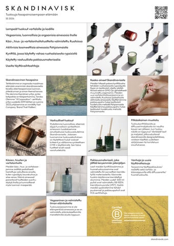Lasit meidän kynttilöissämme ja huonetuoksuissamme ovat valmistettu EU-ssa osittain kierrätetyillä materiaaleilla. Käsivoide tuubiin käytämme kierrätettyä alumiinia. Meidän uudet 500 ml pullot ovat valmistettu 98-100% kierrätysmuovista (rPET). Kaikki meidän pyökistämme tehdyt puukannet ja pakkauspahvit ovat FCS-sertifioituja.