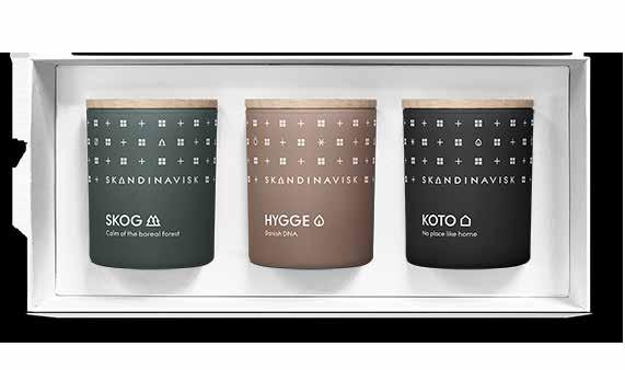 Three scented candle giftset combinations for the ultimate Skandinavisk Seasonal experience. Made in Sweden with Swedish rapeseed wax and FSC-certified engraved beechwood lids, and packaged in premium giftboxes.