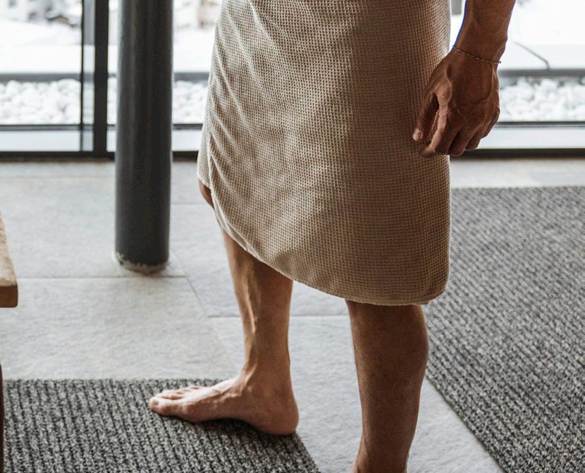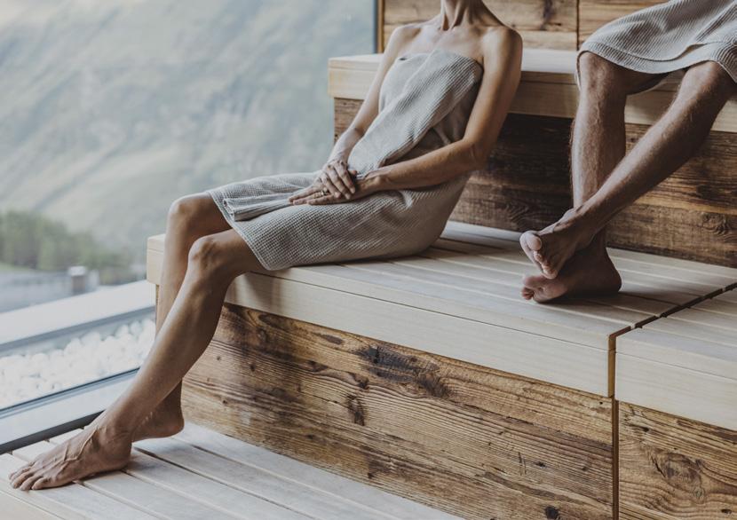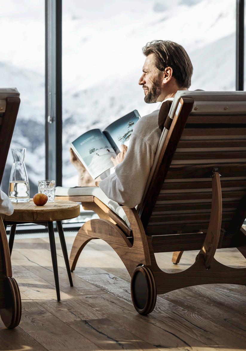 Das Auto in der hauseigenen Tiefgarage mit Elektrolademöglichkeiten sicher geparkt, wird man schon beim Betreten der Hotellobby von einem ganz besonderen Urlaubsvibe umgeben. Sofort stellt sich ein Gefühl von „Angekommen-sein“ ein. Die großzügigen und luxuriösen Zimmer und Suiten sind allesamt im alpinen Stil gehalten und passen sich der Kulisse, die sich einem draußen vor dem Fenster eröffnet, an. Und auch wenn die gemütlichen Betten zu einer kurzen Siesta einladen, führt der erste Weg in den Wellnessbereich. Auf 1.700 m2 finden Ruhesuchende alles, was es zum Entspannen und Krafttanken braucht: Sauna mit regelmäßigen Aufgüssen, Sole-Dampfbad, Panorama-Pool, Sportbecken, Ruheraum und vieles mehr sowie eine feine Auswahl an Massagen und (Beauty-)Behandlungen.