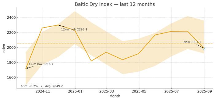 The Baltic Dry Index has been whipsawing on weather and port cycles, with week-to-week swings big enough to dent voyage economics. Update laytime and demurrage clauses now; one extra planned port day often pays for itself. Revisit bunker-adjustment language