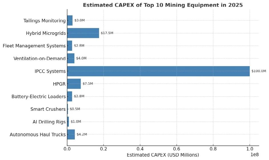 Estimated Cost (2025): USD 50–150M per installation. Best For: Large, deep, and geologically stable open-pit mines (copper, iron ore, coal)