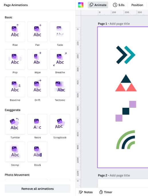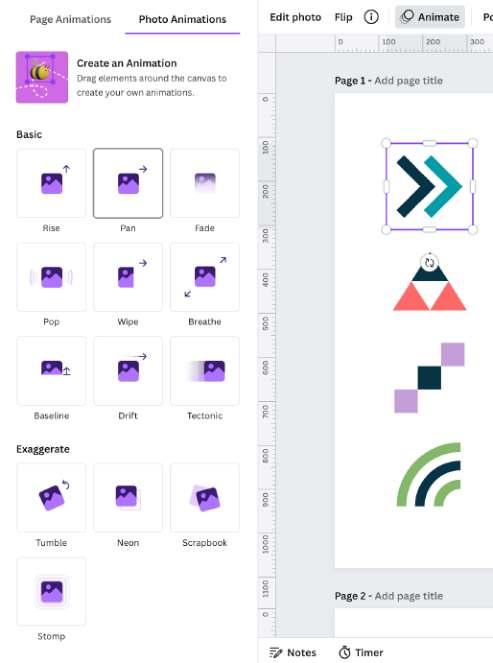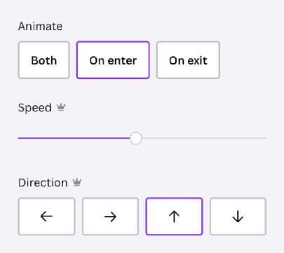 Canva offers a selection of 14+ premium animation styles to choose from allowing you to add motion to different parts of your design and create dynamic visual effects.