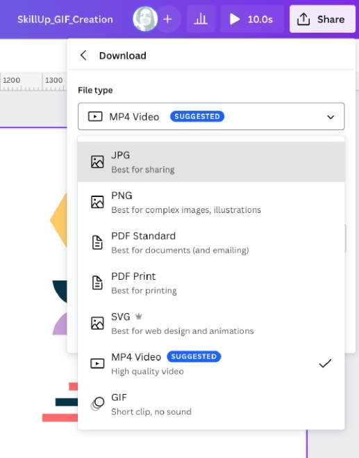 Canva allows you to download your animated designs as GIFs or video formats, providing versatility in sharing your animated content across various platforms and channels.