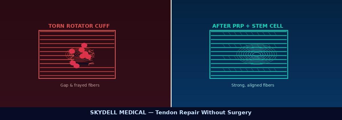 Adults over 60 have a partial rotator cuff tear Most rotator cuff injuries do NOT require surgery. Regenerative medicine heals the tissue — naturally.