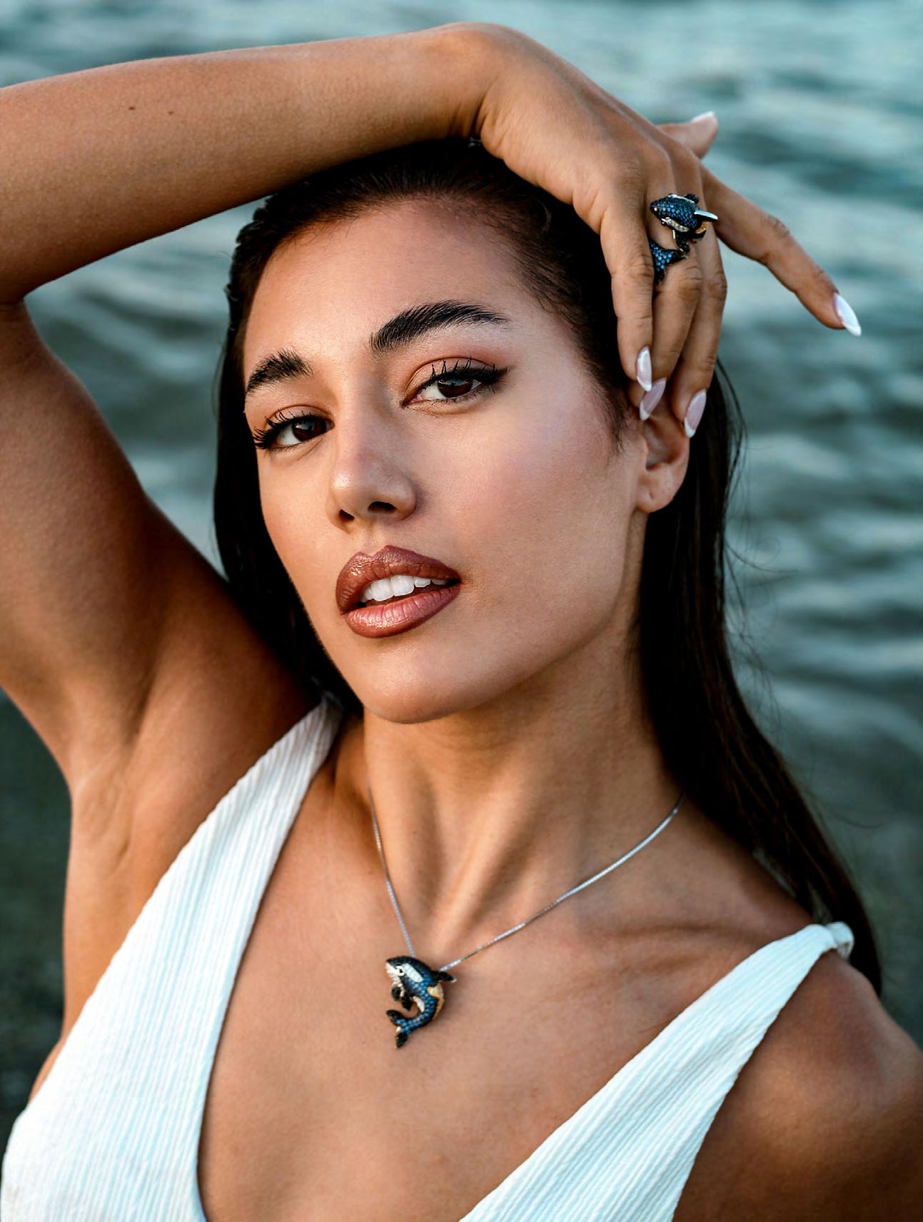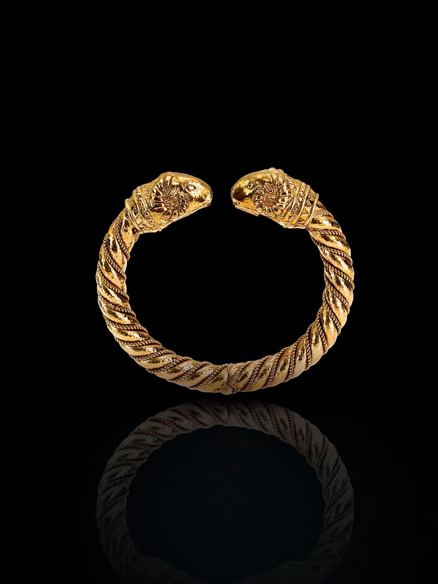 The bracelet with the ram heads, which Aristotle Onassis used to offer, is a symbol of strength and abundance, a gift with intense symbolism, like himself. Personally, I single out the earrings and overall the Helios collection, which I curated from conception to implementation. A powerful symbol, the Sun, is approached in a contemporary way and meets the art of granulation today, representing the new design era of Zolotas.