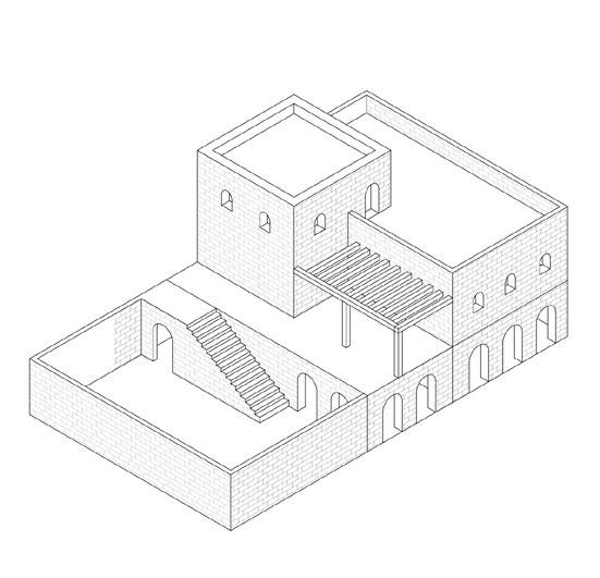 the windcatcher, an ancient Arabian passive cooling device, and the Bedouin tent, which are combined as the roof of the building to cope whe architectural form, the continuous curved roof represents not only modern aesthetics but also the attitude of embracing the future.This project is located in the isolated Saudi desert with heavy wind and sands and the design approach is achieved based on the typology research of Arabian houses, and gardens. WATER TANK The Water