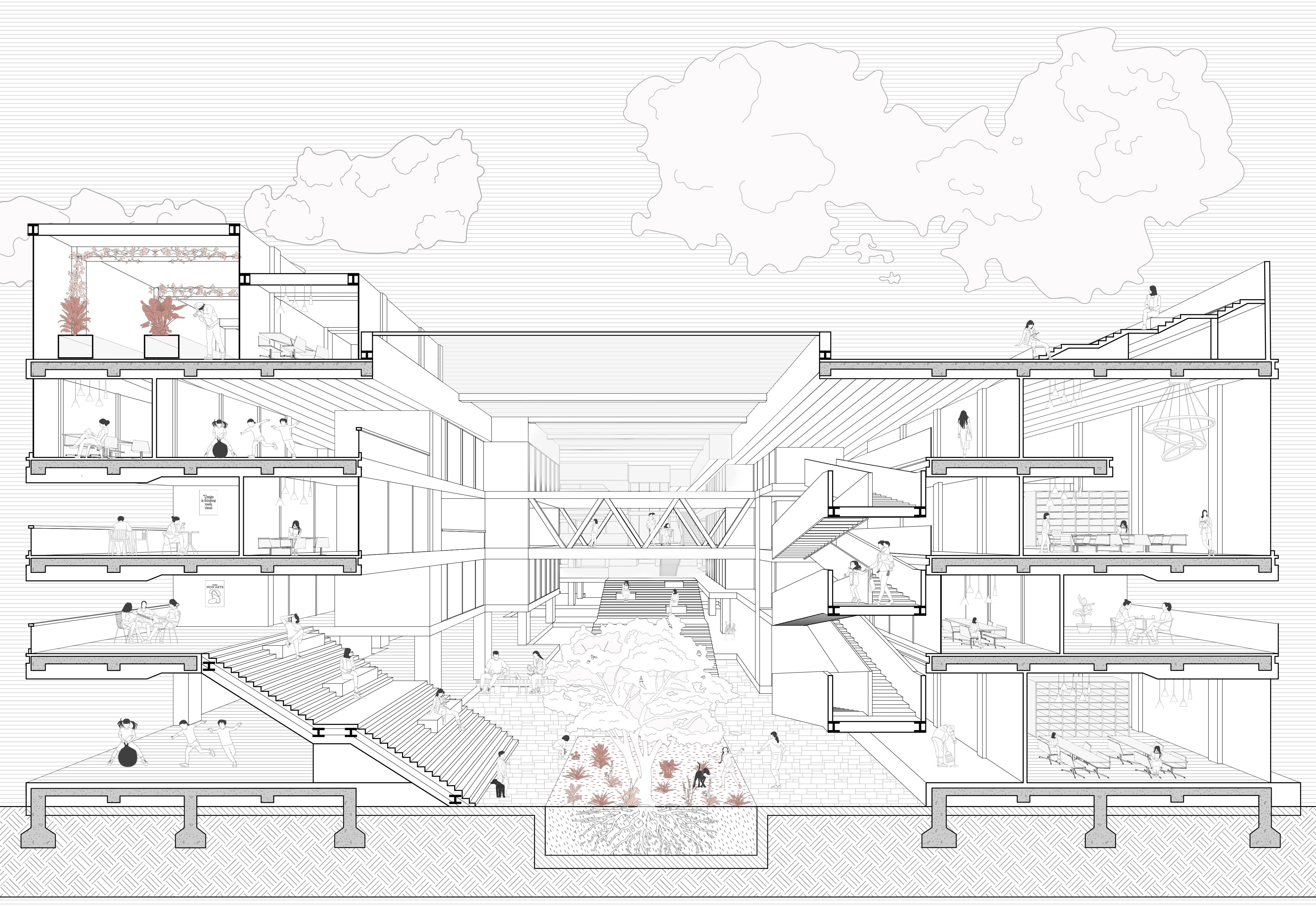 Adding elevated spaces on the ground floor, and increasing atriums. Introducing open spaces for activities and incorporating natural light and ventilation.