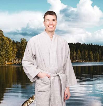Ihanasta, pehmeästä ja luonnonläheisestä Kaarna-mallistosta löytyy kylpytakki, kylpypyyhe ja käsipyyhe.