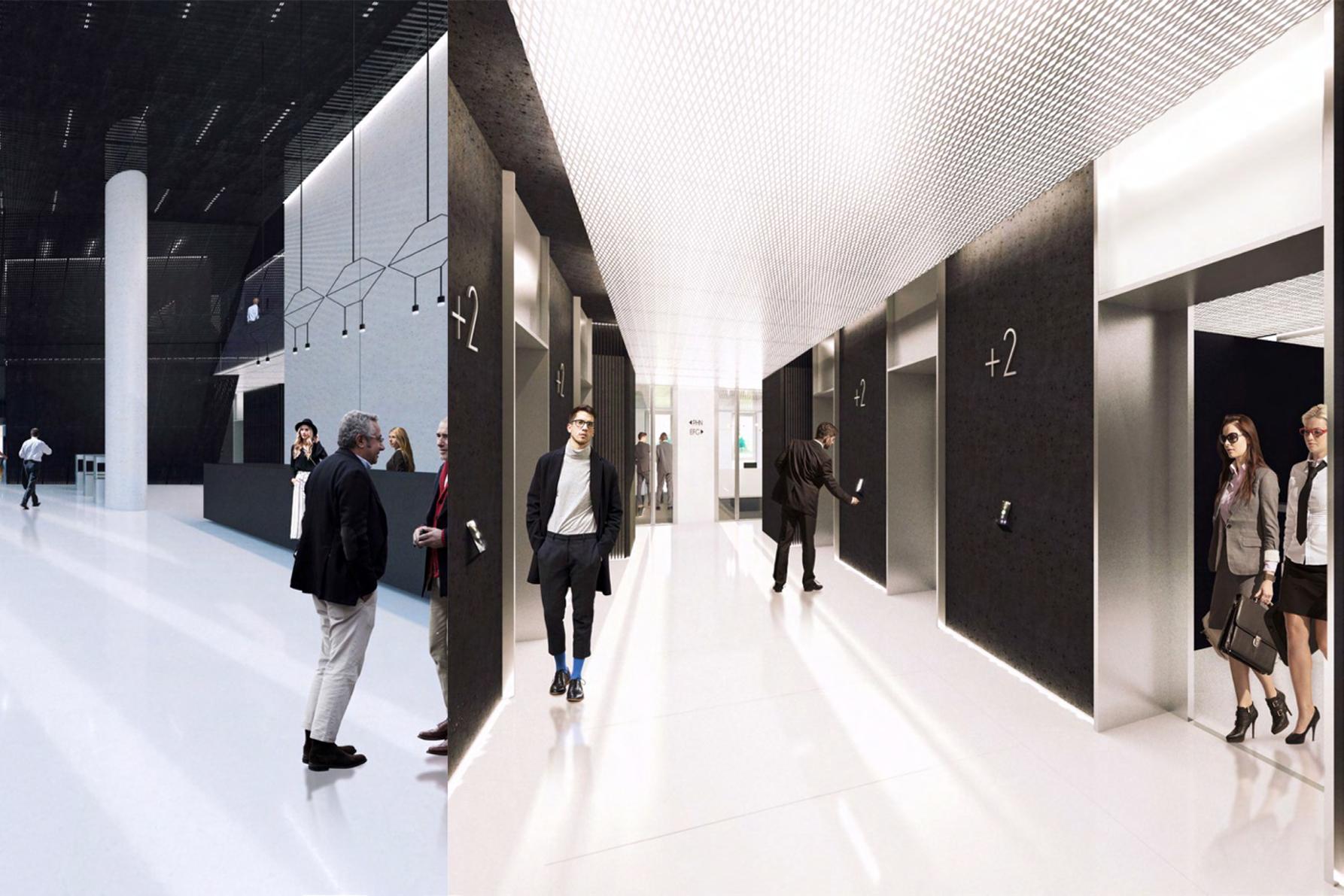 Scope of responsibilities in the project: Participation in the project at the construction and tender design stage. Creating interior design of office part and interior technical drawings.