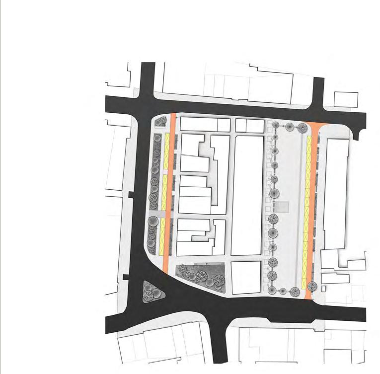 The primary concept of the design aims to revive the historic charm of Hrubieszów’s center by drawing inspiration from the original layout of its buildings. The project proposes the reconstruction of historical stalls, positioning them prominently to serve as focal points of the city center. All new elements are meticulously designed tocomplement rather than overshadow the historic buildings.