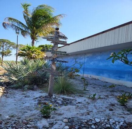 Our salt tolerant garden is under renovation but some of the plants that you ’ll find are shrimp plants, sea grapes, bromeliads, African bush daises, saw palmettos, crown of thorns, lady slipper plant stalks, muhly grass, spider lilies, and frangipani’s. A ground cover, dune sunflower, is currently growing in our nursery and will be planted in garden next month. All is looking good at the sandy beach! Check out the garden and plants that will do well by the ocean and in salty conditions