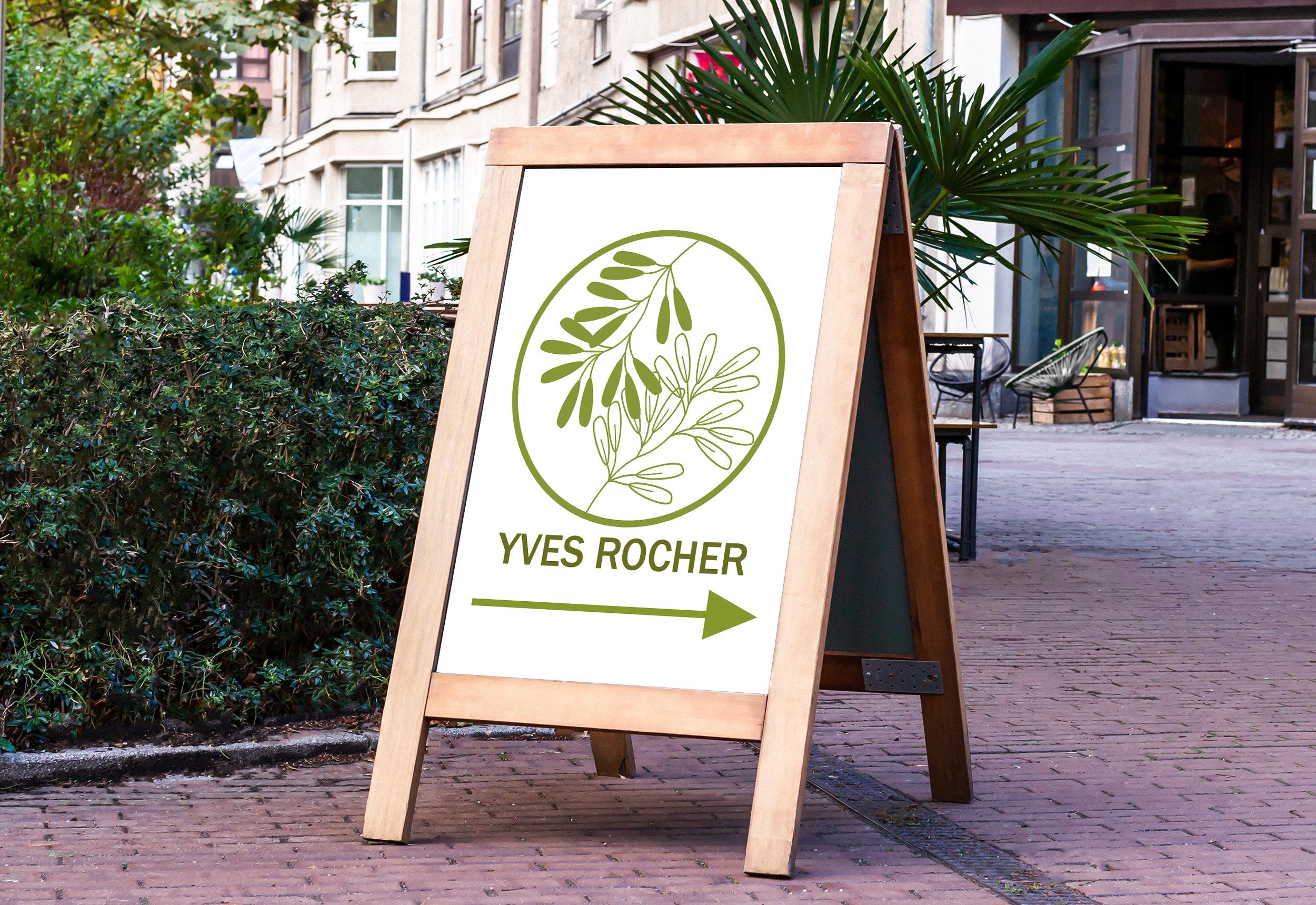 The wall sign represents the brand of mark of Yves Rocher. The wall sign serves as a distinctive and inviting marker, guiding customers to the heart of a beauty sanctuary.