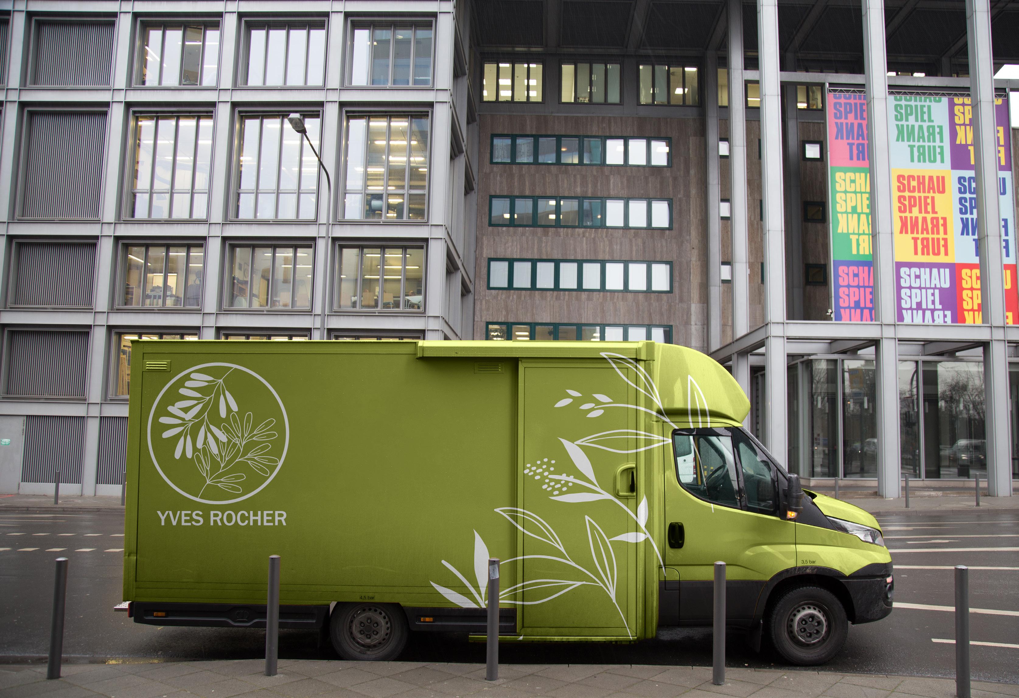 Used to transfer beauty products. The brandmark and pattern elemnts are integrated. Green as a primary color is used on the van.