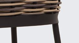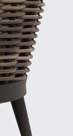 Marty uten arm – en åpen og allsidig stol. På ryggen har stolen med seg den karakteristiske fletten som kjennetegner serien Marty, utviklet i et materiale som tåler både varme og frost. Stolen har i tillegg en komfortabel korsryggpute. De smussavvisende putetrekkene kan tas av og vaskes skånsomt i maskin ved behov.