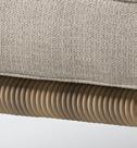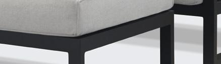 Toseter med sort aluminiumsramme med teakdetaljer og olefin tekstilflett. Quick Dry-puter med avtakbart trekk i Copa Natur tekstil som kan vaskes skånsomt. Kan kombineres med tilhørende pall for fleksibel daybed-løsning. Design: Slettvoll. Mål: B 150, D 78, H 60/73, SH 40.