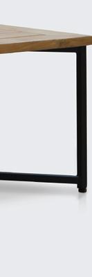 Robin spisebord er laget av førsteklasses teak med et stilrent, sort understell i aluminium. Modellen finnes både i rektangulær og rund variant i to ulike størrelser. Spisestolen Durban er laget i sort aluminium med teakdetaljer på armlenene og slitesterk tekstilflett i ryggen. Dens lette uttrykk passer sammen med spisebord i de fleste materialer og fasonger. Stolen kan enkelt stables bort når den ikke er i bruk.