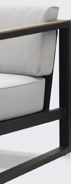 Stol med sort aluminiumsramme med teakdetaljer og olefin tekstilflett. Quick Dry-puter med avtakbart trekk i Copa Natur tekstil som kan vaskes skånsomt. Design: Slettvoll. Mål: B 77, D 78, H 60/73, SH 40.