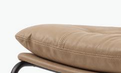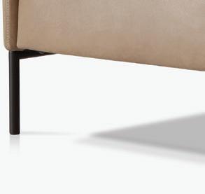 Materialer: Valgfri tekstil. Ramme i tekstil eller skinn, flere farger. Ben i sort stål. Puter: Myke ryggputer og fast stoppet setepute. Design: Slettvoll.