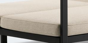 02 The Lazio dining chair is made from durable, low-maintenance materials. Its cushions are reversible with removable covers that can be gently washed when needed. Slender legs in black aluminium give the chair a light and refined appearance.