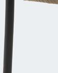 Bar stool in bronze-coloured aluminium with linen-coloured olefin woven textile. Quick