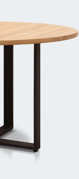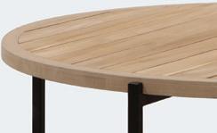 The Harbour coffee table is available in both square and round versions in various sizes. Its teak tabletop and slim black metal base complement the Marty collection beautifully.
