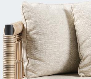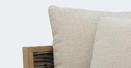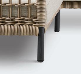 02 Lazio is characterised by its distinctive woven detailing. Each module features reversible cushions with removable, washable covers for easy care. Shown here with the Anzio coffee table, which has adjustable legs for added stability.