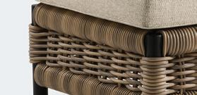 Ottoman with base in maintenance-free wicker and black aluminium. Seat cushion with removable cover in Fontelina. Design: Slettvoll. Dim.: B 73, D 53, H 36.