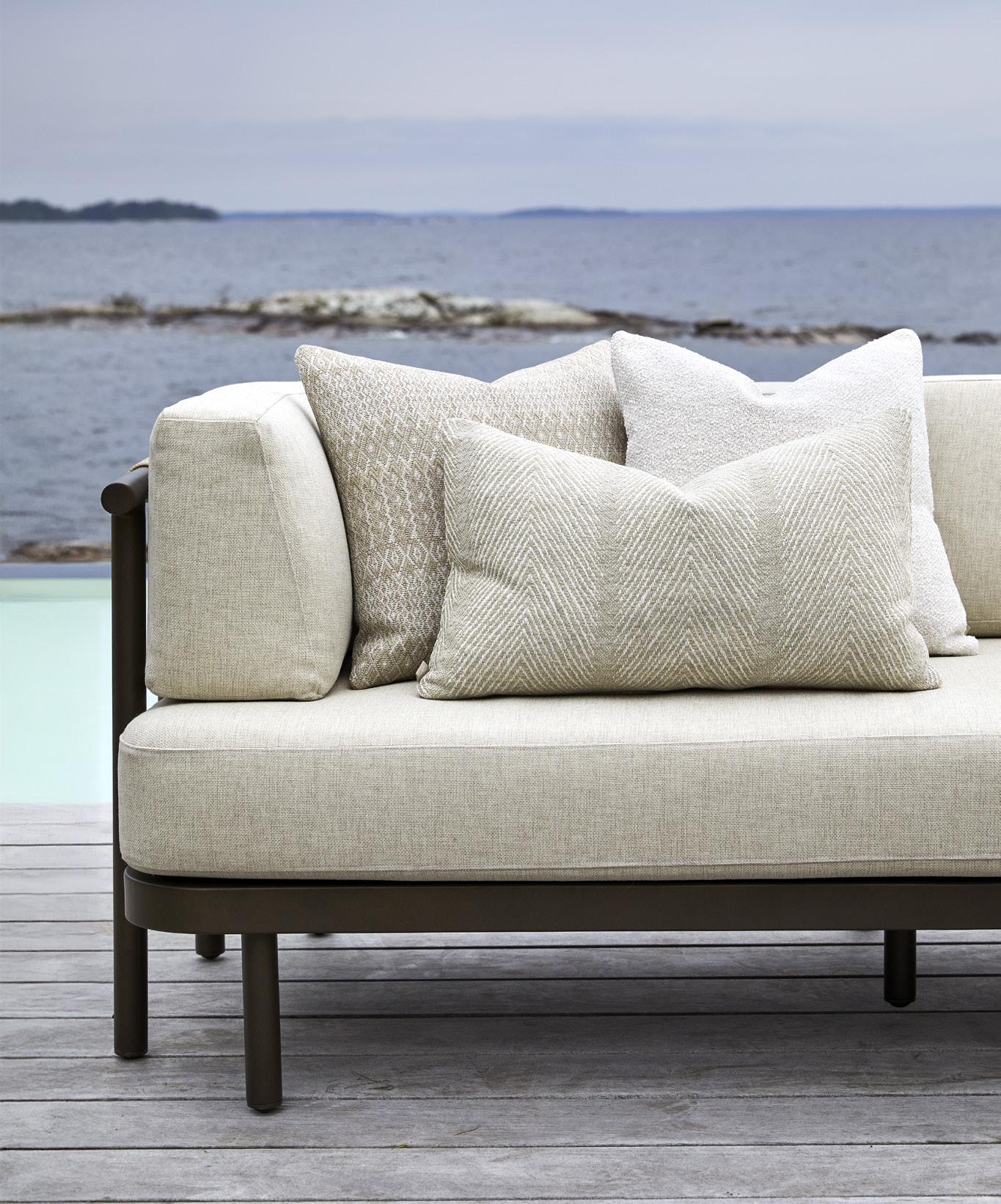 With the Elm sofa, you can take the comfort of the living room outdoors. The sofa has a contemporary look, and is available in two sizes, as well as a chaise longue version. The softly shaped frame, taut rope detailing and generous curved cushions create a striking piece. The Elm sofa pairs beautifully with the new Montego lounge chair, inspired by Slettvoll’s award-winning Mathis chair.