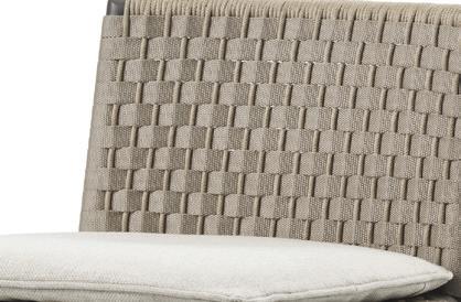 01 The Lazio outdoor collection is crafted with a detailed, grey-mélange weave that provides an elegant look to any dining area. In addition to dining chairs, the series includes a sofa, lounge chair, sun lounger and ottoman.