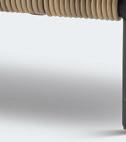 Elm sofa har en bronsefarget ramme som harmonerer godt med den varme fargen i tauverket og den lyse tekstilen i putene. Putene er laget i praktisk, hurtigtørkende materiale. Stolen Montego har bronsefarget ramme og ben i rustfritt stål. Her danner Elm og Montego en behagelig gruppe sammen med Anzio sofabord. Bordet har slitesterk bordplate i keramisk granitt, som er svært motstandsdyktig mot flekker, sollys og riper.
