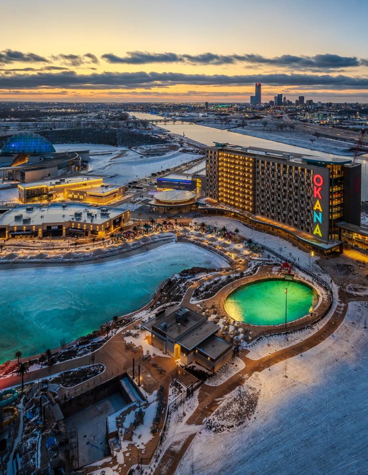 What makes Boombox stand out is the immersive atmosphere of it all. Regardless if you’re playing volleyball, the layout of the state-ofthe-art 70,000-square-foot space is unlike anything in OKC, instantly transporting visitors to sunny shores. Outside, six volleyball courts are surrounded by walls, shielded from wind and excess sun, while the indoor area is filled with colorful Adirondack chairs, cornhole, ping pong and graffiti-clad boomboxes. Tropical cocktail in hand, it’s a day at the beach— without ever leaving OKC.