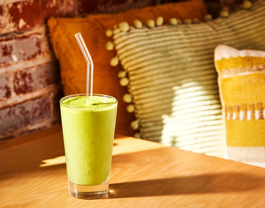 taste like vacation, and even though I live just a couple of minutes down the road, my palate feels like I’m on an island, cool sand in my toes. There’s also an impressively well-stocked array of craft beers and seltzers, including local ales like Lively Beerworks and Anthem Brewing, as well as canned cocktails and, aptly, beer from Hawaii’s Kona Brewing Co. There’s a curated food menu, with items like acai bowls, flatbreads and sandwiches designed to fuel a game of volleyball, while smoothies — like the Tropical Sunrise, with mango, strawberry and banana — lean into the beachy vibe.
