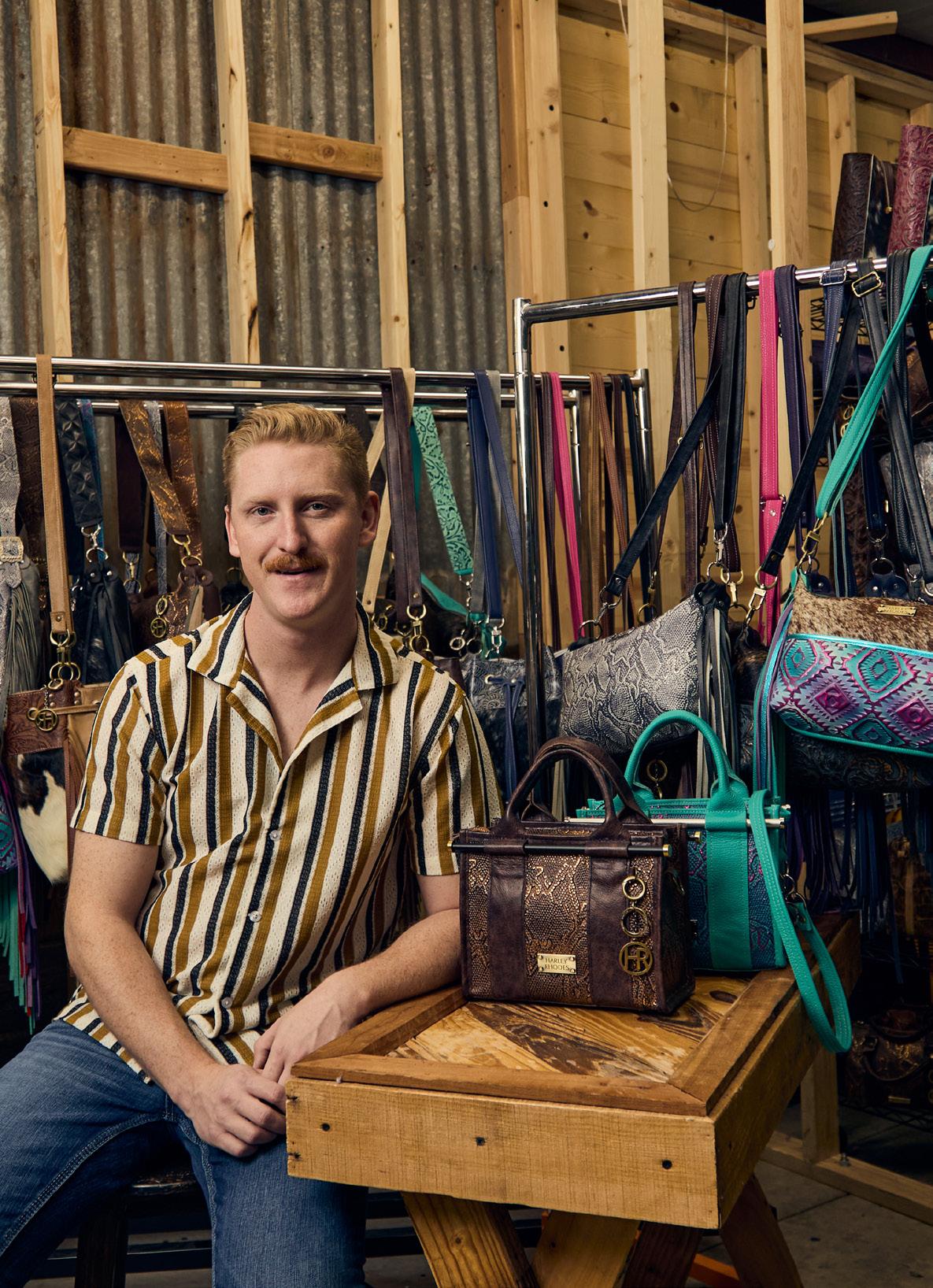 I wanted to make sure these bags are the highest quality Western product coming out of the United States. I design all of the patterns myself and choose all of the colors and accents, which are created on the finest quality Italian leather available. I have designed all of the hardware from scratch, which features our logo on every piece, which is then produced through the same hardware manufacturer that designers like Prada and Jimmy Choo use. Each bag is then built right here at our studio in Edmond. The moment you touch our bags, you can tell they are a luxury item.