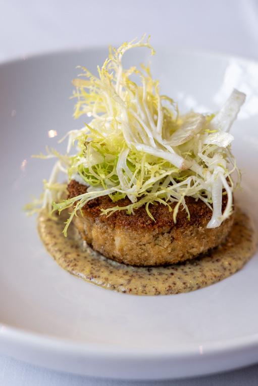CRAB CAKE WITH LUMP BLUE CRAB, OLD BAY, DIJON CREAM.