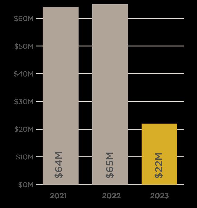 2019 2020 2021 2022 2023 Single Family & Duplex $447 319 $413 $642 $750 Condominium & Townhome $305 $402 $388 $557 $439 AVERAGE SALE / LAST LISTED PRICE Single Family & Duplex 98% Condominium & Townhome 96% SALES VOLUME COMPARISON