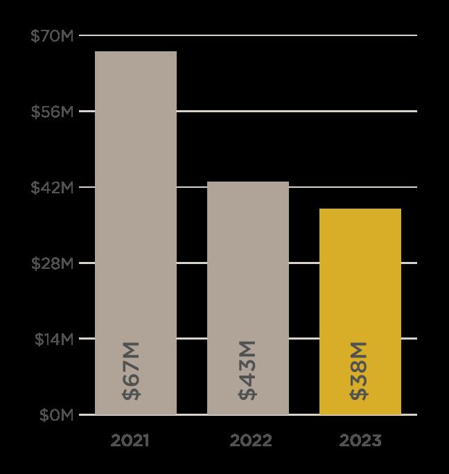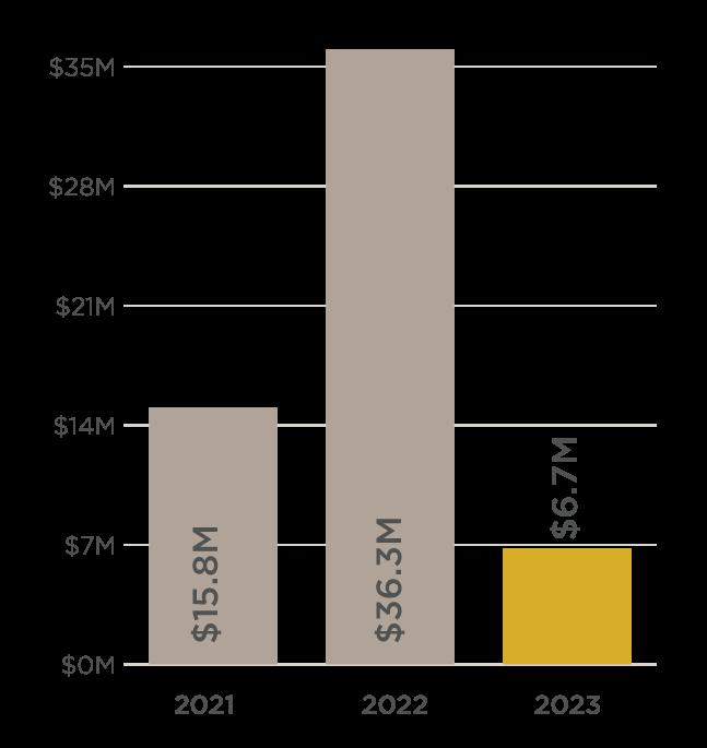 PRICE PER SQUARE FOOT SALE VS. LIST PRICE COMPARISON 2019 2020 2021 2022 2023 Single Family & Duplex $216 $249 $261 $365 $389 Condominium & Townhome $312 $243 $308 $356 $492 AVERAGE SALE / LAST LISTED PRICE Single Family & Duplex 98% Condominium & Townhome 100% SALES VOLUME COMPARISON $405 averagesold price per squarefoot,a 7%increaseover 2022 $1.6M highest sale SSFrepresented theseller
