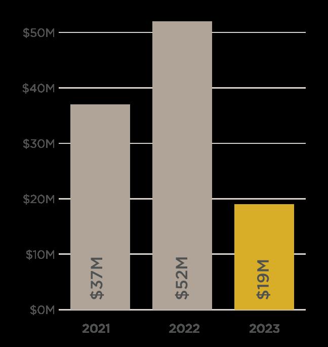SINGLE FAMILY & DUPLEX SALES VOLUME NO OF SALES AVG DAYS ON MARKET AVG SALE MEDIAN SALE 2019 $36,908,166 10 349 $3,690,817 $3,137,500 2020 $17,500,000 4 322 $4,375,000 $4,400,000 2021 $86,929,000 15 358 $5,795,267 $5,245,000 2022 $23,645,500 4 98 $5,911,375 $4,679,000 2023 $39,229,250 6 250 $6,538,208 $7,012,500 CONDOMINIUM & TOWNHOME SALES VOLUME NO OF SALES AVG DAYS ON MARKET AVG SALE MEDIAN SALE 2019 $56,623,275 43 143 $1,316,820 $1,025,000 2020 $36,617,400 24 163 $1,525,725 $1,135,700 2021 $129,366,700 79 121 $1,637,553 $1,485,000 2022 $125,589,500 53 23 $2,369,613 $2,100,000 2023 $89,145,500 20 55 $4,457,275 $2,381,250 AVERAGE PRICE PER SQUARE FOOT SALE VS. LIST PRICE COMPARISON 2019 2020 2021 2022 2023 Single Family & Duplex $733 $764 $891 $1,069 $990 Condominium & Townhome $757 $784 $929 $1,332 $1,567 AVERAGE SALE / LAST LISTED PRICE Single Family & Duplex 93% Condominium & Townhome 96% #1 IN MARKET SHARE SALES VOLUME COMPARISON 89% increaseof averagesold price over 2022,to $4.93M $1,433 averagepriceper squarefoot,a9% increaseover 2022