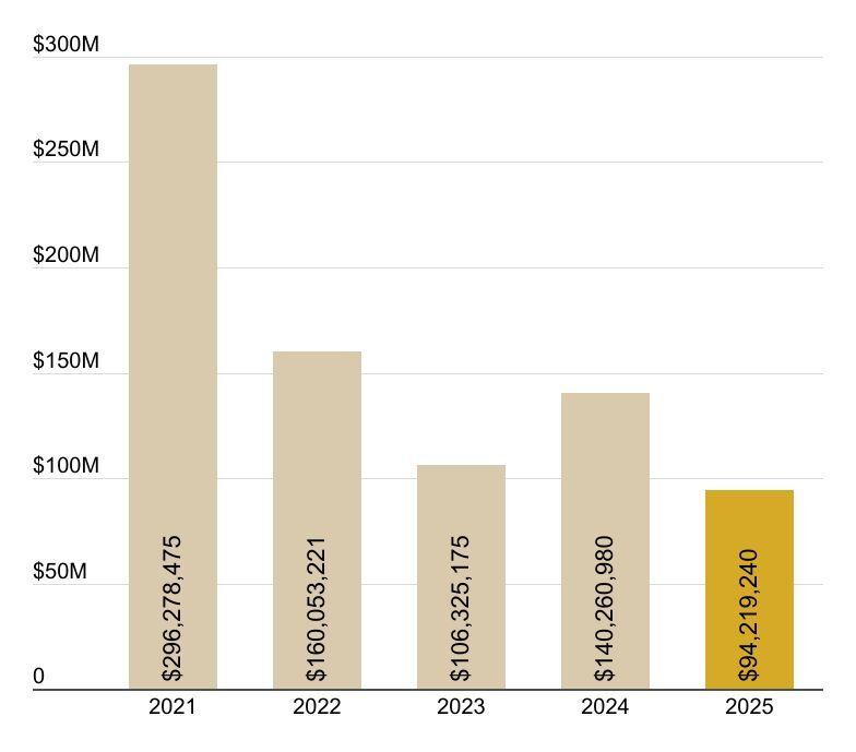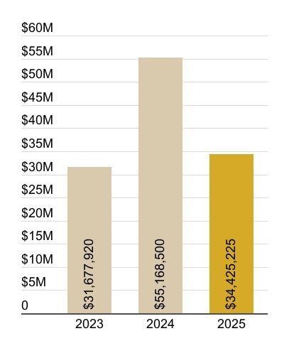 $4.4M salesvolumefor improved/unimproved land,a77%decrease over 2024