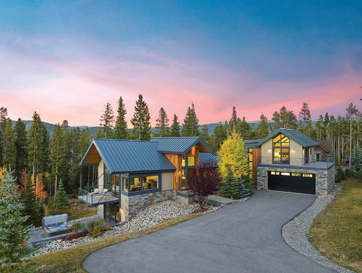 This incredible Summit Estates masterpiece boasts end-ofthe-road privacy and arguably one of the most jaw-dropping views in Summit County. This timeless mountain residence has a classic lodge-style great room with soaring vaulted ceilings, log beams, and walls of glass to the west to soak in an amazing Tenmile Range view.