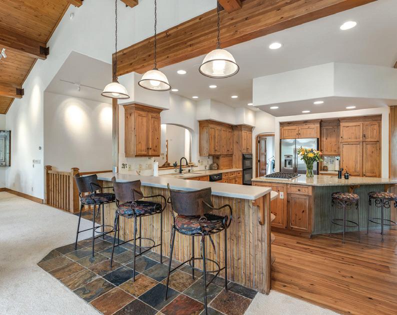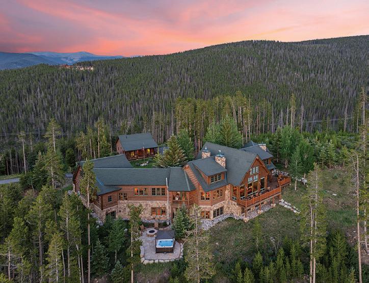 This incredible Summit Estates masterpiece boasts end-ofthe-road privacy and arguably one of the most jaw-dropping views in Summit County. This timeless mountain residence has a classic lodge-style great room with soaring vaulted ceilings, log beams, and walls of glass to the west to soak in an amazing Tenmile Range view.