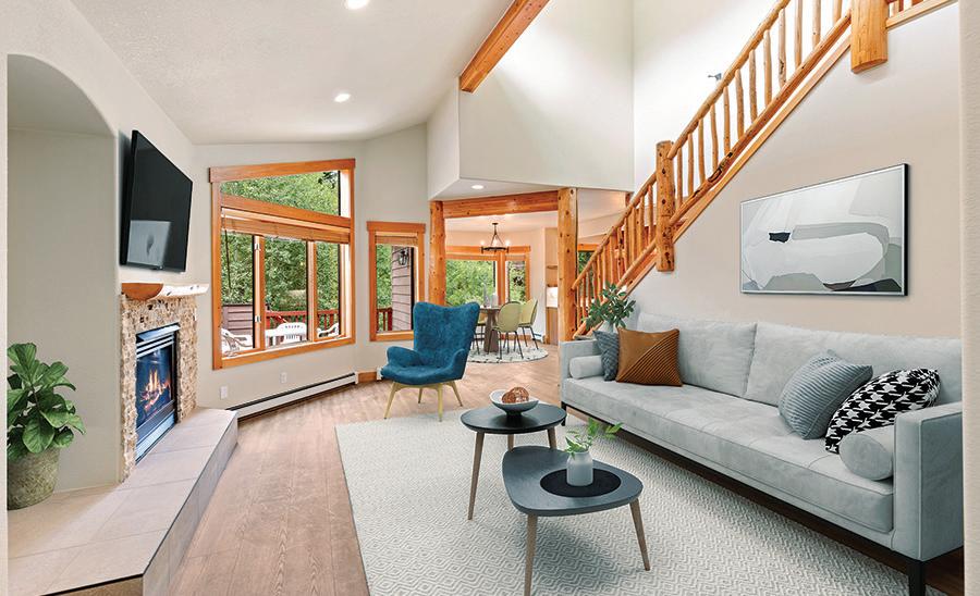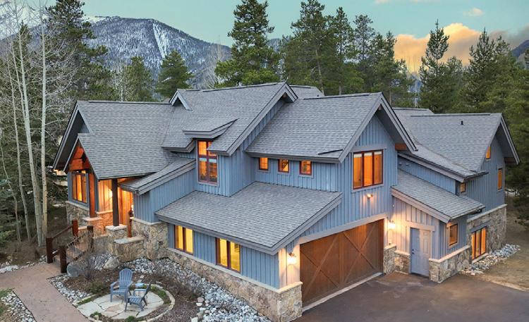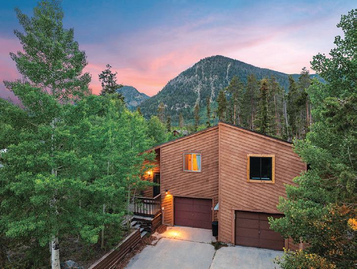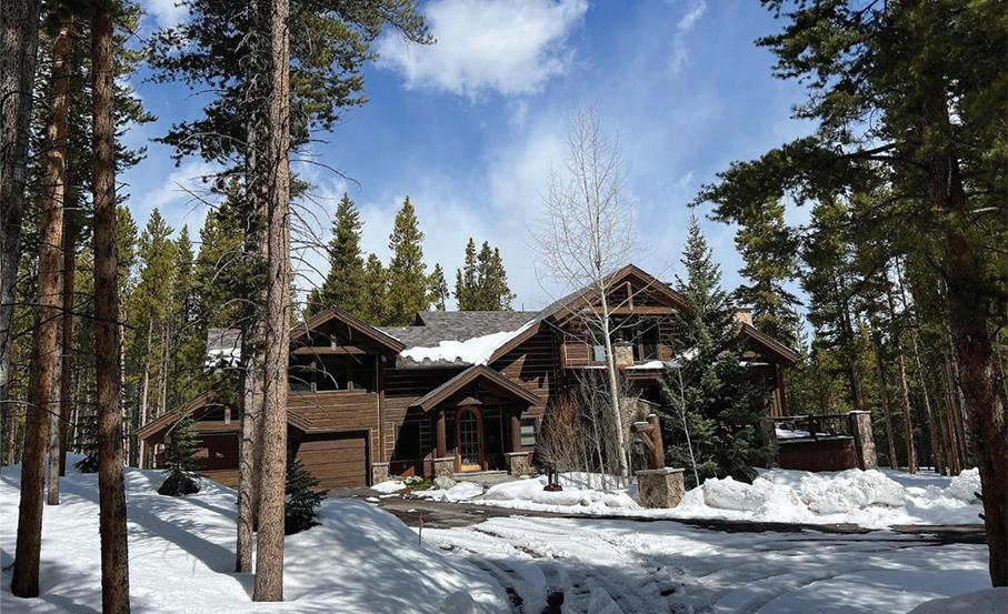 This incredible Summit Estates masterpiece boasts end-ofthe-road privacy and arguably one of the most jaw-dropping views in Summit County. This timeless mountain residence has a classic lodge-style great room with soaring vaulted ceilings, log beams, and walls of glass to the west to soak in an amazing Tenmile Range view.