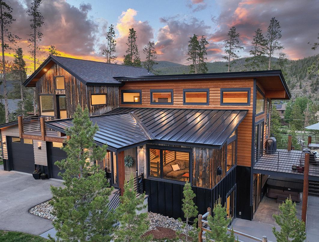 This Discovery Hill Residence has a new luxurious Scandinavian design that captures the absolute essence of mountain living from its private hillside setting. The home is artfully site planned to take advantage of its serene location with sweeping views to the Continental Divide and twinkling lights of Keystone Ski Area in the distance.