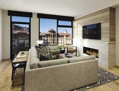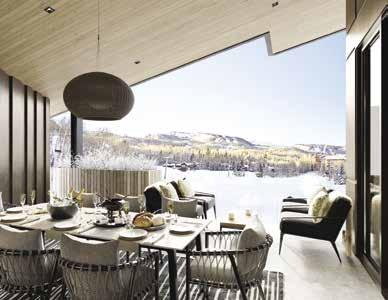 Penthouse residence with soaring vaulted ceilings, sweeping mountain views, expansive garden terrace, large operable window walls and infinity great room. Flex room allows owners to personalize use, whether office, bedroom, or media room. Spacious entertaining kitchen showcases Wolf appliances and large kitchen island. Private, direct elevator access via a gracious residence entry. Luxurious primary bedroom with walk-in closet and spainspired bathroom. Ensuite guest rooms with an additional powder room for the flex room. Private two-car garage within the garage. Pricing and all information subject to change. Artist’s conceptual renderings are intended solely for illustrative purposes.
