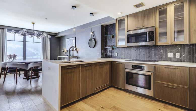 Private corner residence with immediate access to Aura Lounge, Grotto and Ski Locker Room. Walk-out ski-slope patio with large operable window walls and direct access to ski/hiking trails. Flex room allows owners to personalize use, whether office, bedroom, or media room. Spacious entertaining kitchen showcases Wolf appliances and large kitchen island. Private, direct elevator access via a gracious residence entry. Luxurious primary bedroom with walk-in closet and spa-inspired bathroom. Ensuite guest bedrooms with an additional powder room plus shower for the flex room. Pricing and all information subject to change. Artist’s conceptual rendering used are intended solely for illustrative purposes.