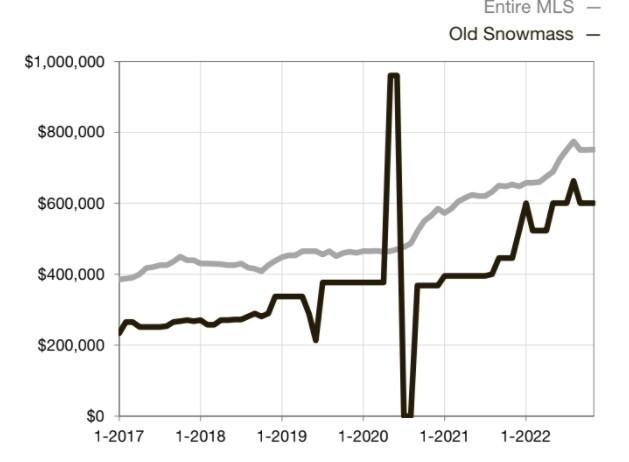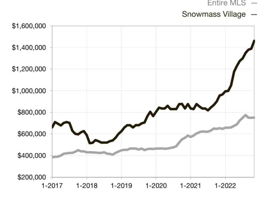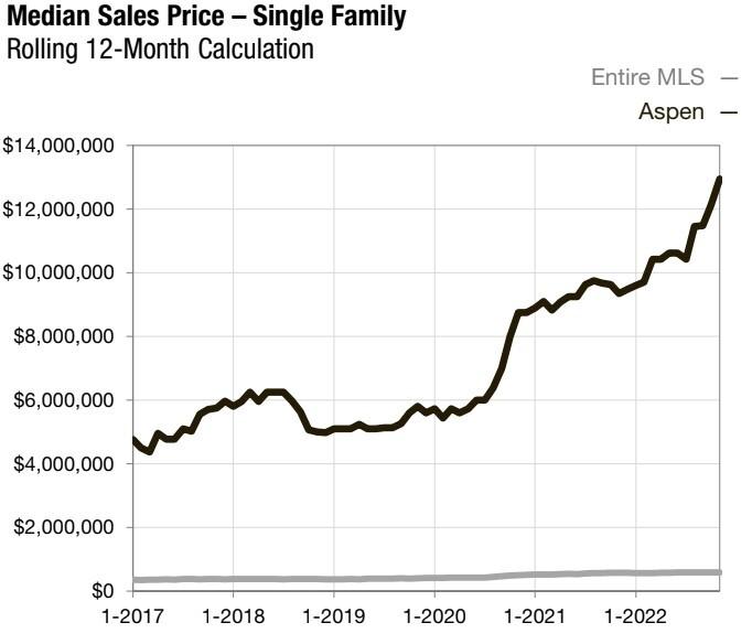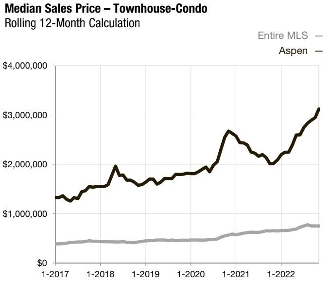 Med ian Sales Pr ice- Sing le Fam ily Rolling 12-Month Calculation Med ian Sales Pr ice- Tow nho use/ Co nd o Rolling 12-Month Calculation Current asof December 5, 2022 All data from the Aspen/Glenwood SpringsMLSInc Report © 2022 ShowingTime