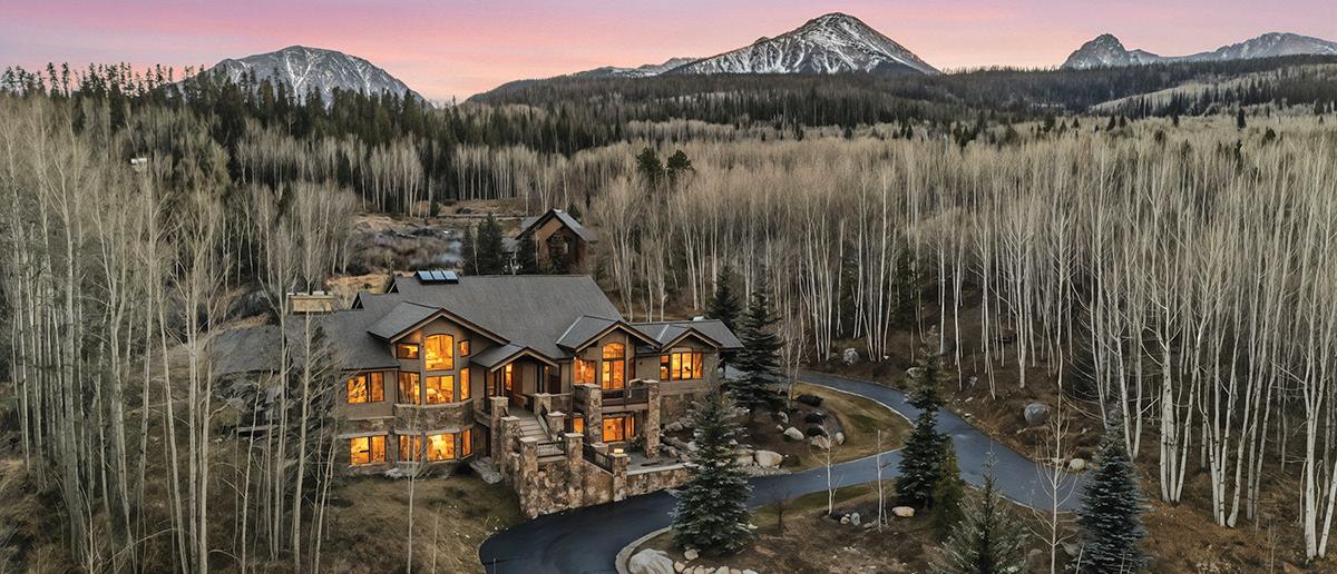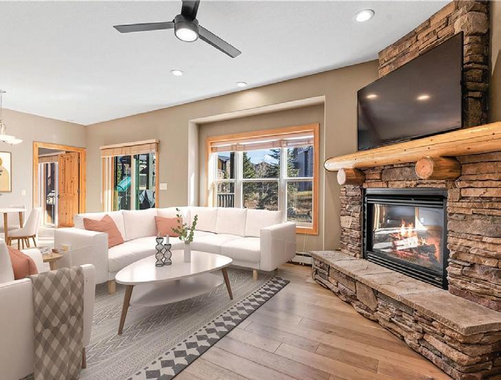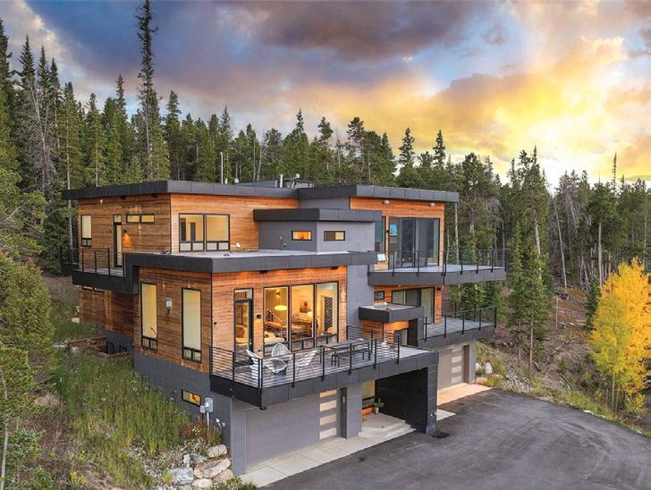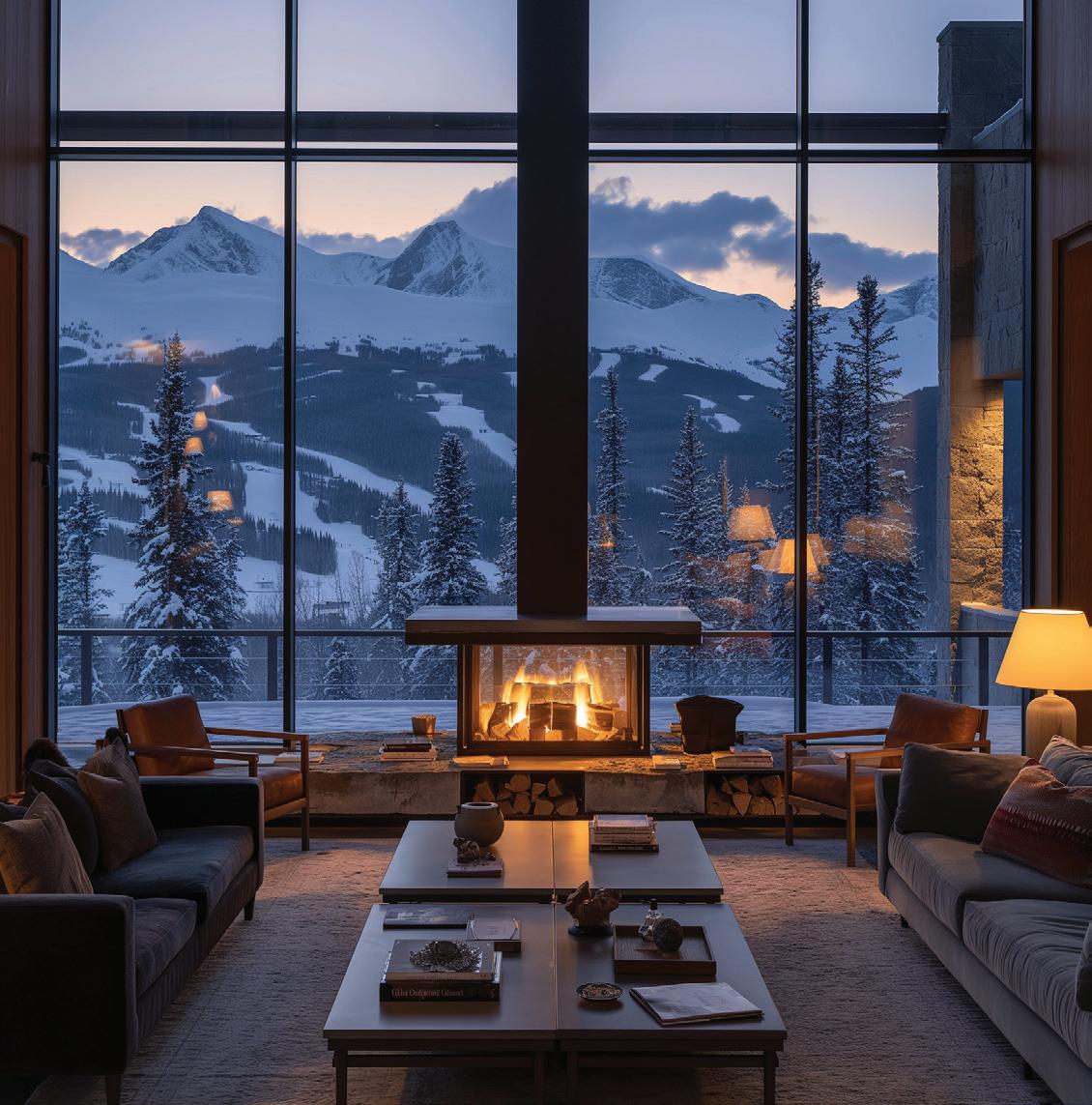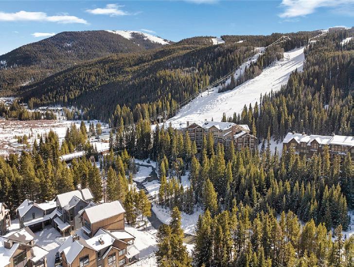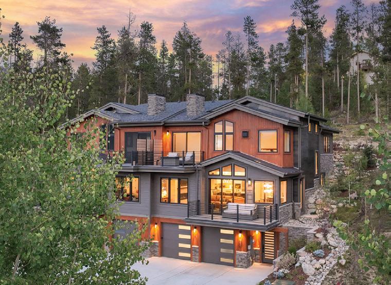 Modern mountain masterpiece on 2+ secluded acres with stunning views from Buffalo Mountain to Peak 10. Designed for entertaining, it features floorto-ceiling windows, chef’s kitchen, heated deck, wine room, and hot tub. Warm, light-filled spaces blend luxury and nature in perfect harmony.