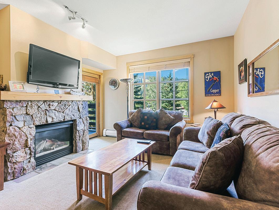 Enjoy Summit County from this main floor unit off Tiger Road, near Breckenridge and Frisco. Features include sunny views of the Ten Mile Range, mature Aspens, inunit laundry, gas fireplace, fitness center, and shuttle to ski areas.