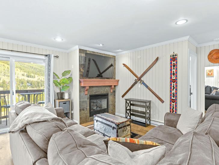 Charming top-floor condominium near Main Street and skiing, offering great value and views. Bright layout, wood-burning fireplace, steps to Carter Park and trails. Enjoy year-round convenience with heated underground parking, storage locker, and 6 months HOA dues paid.